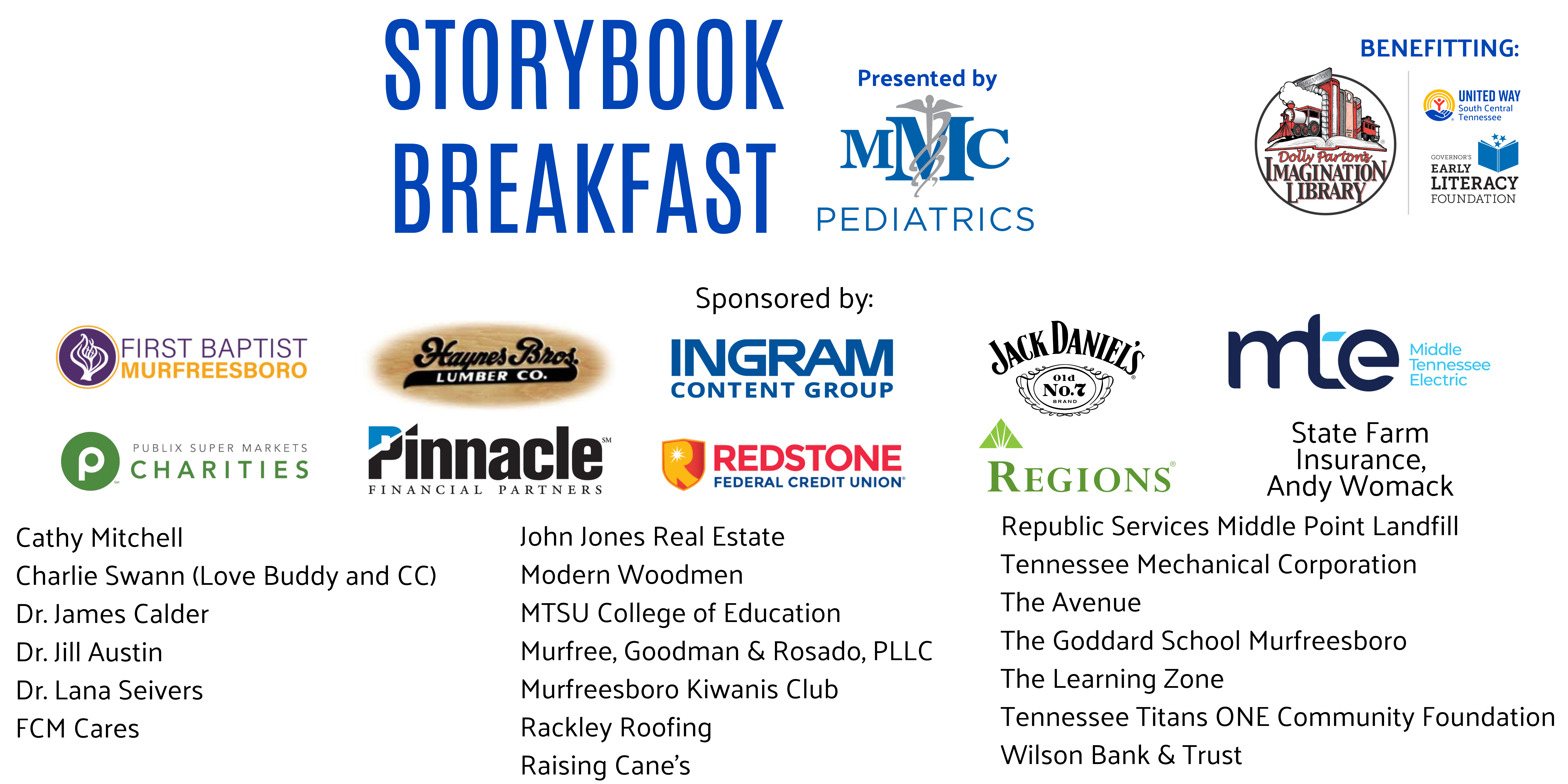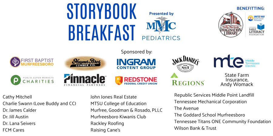 United Way of South Central Tennessee, in partnership with MMC Pediatrics, will host the 7th Annual Storybook Breakfast, bringing beloved characters to life for families across our community.