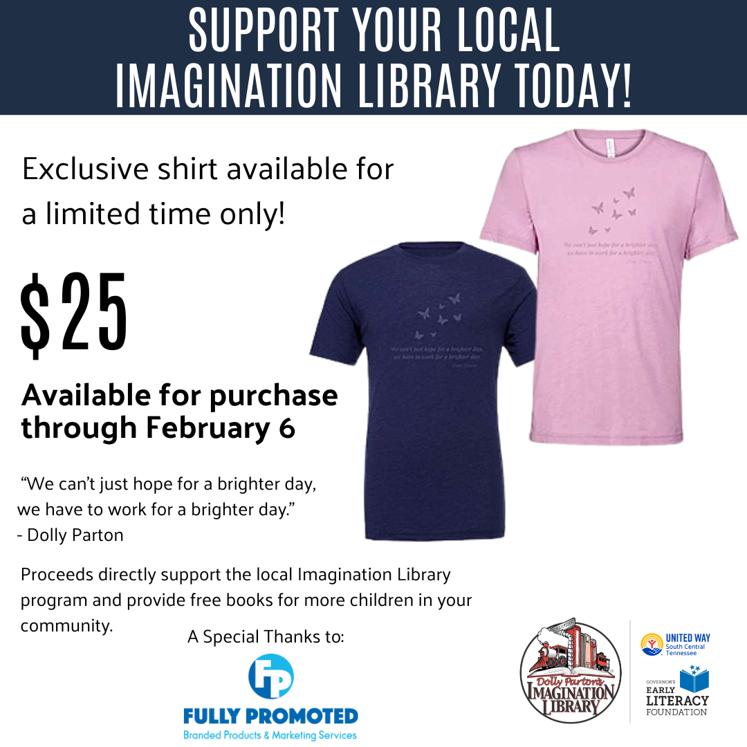 Your support helps us continue our mission of strengthening early childhood education and literacy programs in our community. All proceeds benefit the local Imagination Library, supplying free books to children from birth to age five.